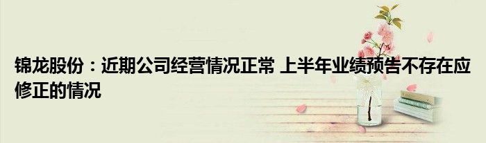 锦龙股份:近期公司经营情况正常 上半年业绩预告不存在应修正的情况