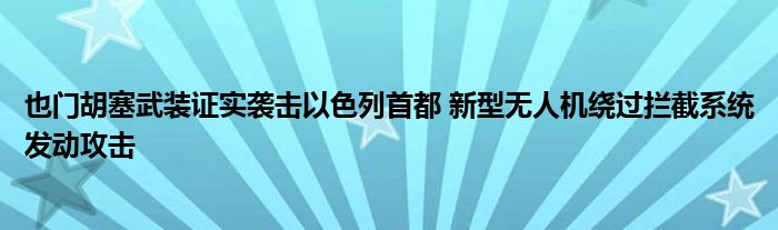 也门胡塞武装证实袭击以色列首都 新型无人机绕过拦截系统发动攻击