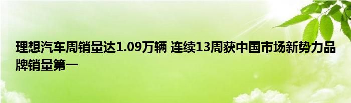 理想汽车周销量达1.09万辆 连续13周获中国市场新势力品牌销量第一