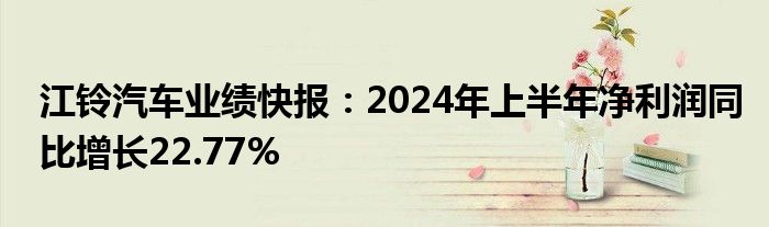 江铃汽车业绩快报:2024年上半年净利润同比增长22.77%