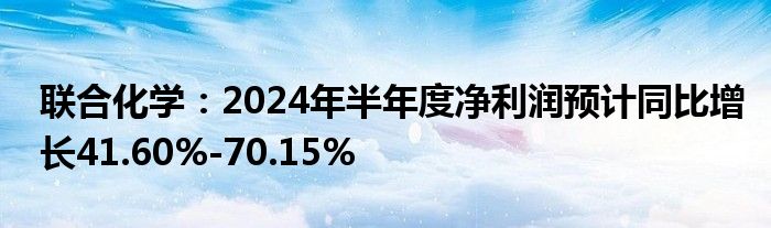 联合化学:2024年半年度净利润预计同比增长41.60%-70.15%