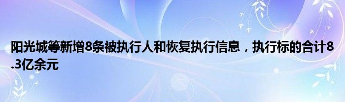 阳光城等新增8条被执行人和恢复执行信息,执行标的合计8.3亿余元