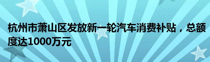 杭州市萧山区发放新一轮汽车消费补贴,总额度达1000万元