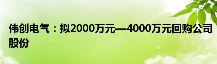 伟创电气:拟2000万元—4000万元回购公司股份