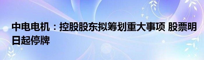 中电电机:控股股东拟筹划重大事项 股票明日起停牌