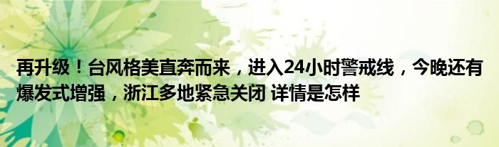 【再升级!台风格美直奔而来,进入24小时警戒线,今晚还有爆发式增强,浙江多地紧急关闭】大家可以一起来了解一下这是什么情况!