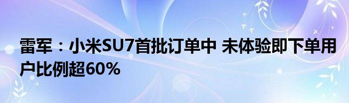 雷军:小米SU7首批订单中 未体验即下单用户比例超60%
