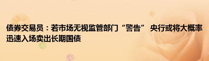 债券交易员:若市场无视监管部门“警告” 央行或将大概率迅速入场卖出长期国债