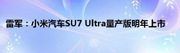 雷军:小米汽车SU7 Ultra量产版明年上市