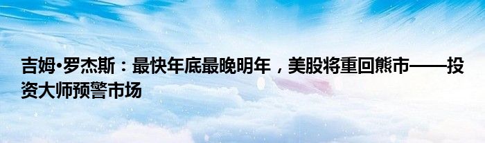 吉姆·罗杰斯:最快年底最晚明年,美股将重回熊市——投资大师预警市场