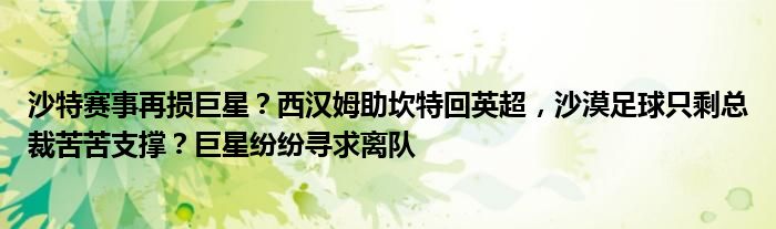 沙特赛事再损巨星?西汉姆助坎特回英超,沙漠足球只剩总裁苦苦支撑?巨星纷纷寻求离队