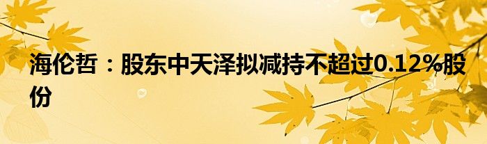 海伦哲:股东中天泽拟减持不超过0.12%股份