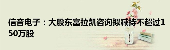 信音电子:大股东富拉凯咨询拟减持不超过150万股