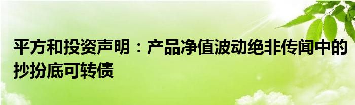 平方和投资声明:产品净值波动绝非传闻中的抄扮底可转债