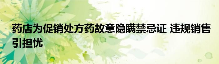 药店为促销处方药故意隐瞒禁忌证 违规销售引担忧