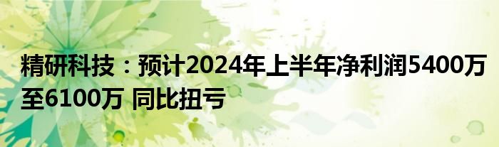 精研科技:预计2024年上半年净利润5400万至6100万 同比扭亏