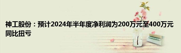 神工股份:预计2024年半年度净利润为200万元至400万元 同比扭亏