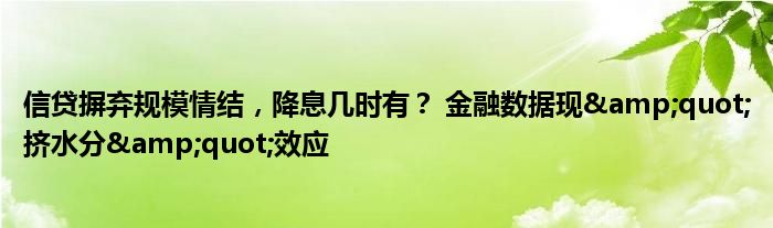 信贷摒弃规模情结,降息几时有? 金融数据现"挤水分"效应