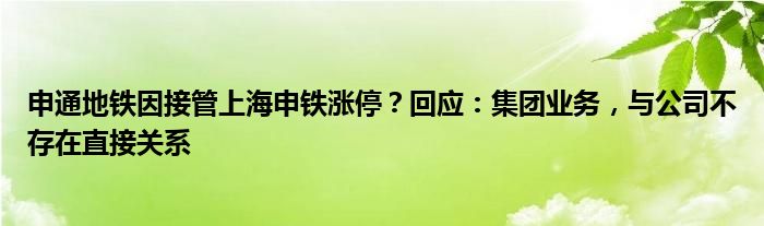 申通地铁因接管上海申铁涨停?回应:集团业务,与公司不存在直接关系