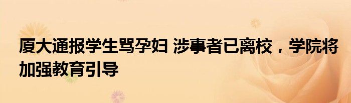 厦大通报学生骂孕妇 涉事者已离校,学院将加强教育引导
