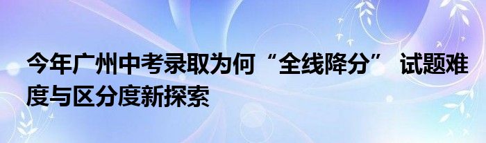 今年广州中考录取为何“全线降分” 试题难度与区分度新探索