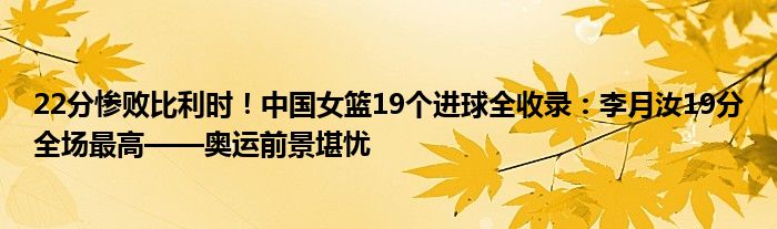 22分惨败比利时!中国女篮19个进球全收录:李月汝19分全场最高——奥运前景堪忧