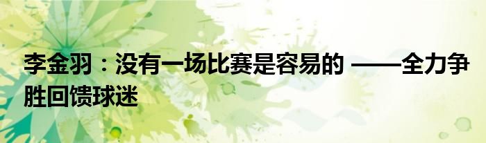 李金羽:没有一场比赛是容易的 ——全力争胜回馈球迷