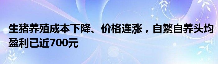 生猪养殖成本下降、价格连涨,自繁自养头均盈利已近700元