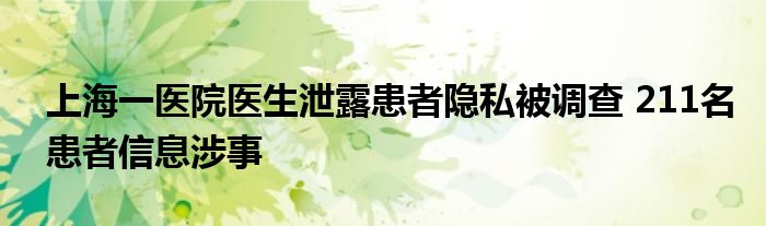 上海一医院医生泄露患者隐私被调查 211名患者信息涉事