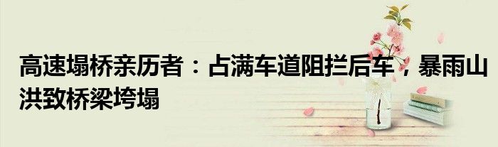 高速塌桥亲历者:占满车道阻拦后车,暴雨山洪致桥梁垮塌