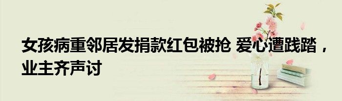 女孩病重邻居发捐款红包被抢 爱心遭践踏,业主齐声讨