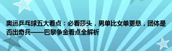 奥运乒乓球五大看点:必看莎头,男单比女单更悬,团体是否出奇兵——巴黎争金看点全解析