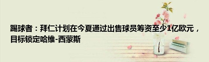 踢球者:拜仁计划在今夏通过出售球员筹资至少1亿欧元,目标锁定哈维-西蒙斯