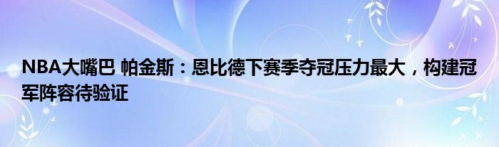 NBA大嘴巴 帕金斯:恩比德下赛季夺冠压力最大,构建冠军阵容待验证