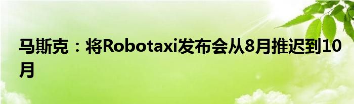 马斯克:将Robotaxi发布会从8月推迟到10月