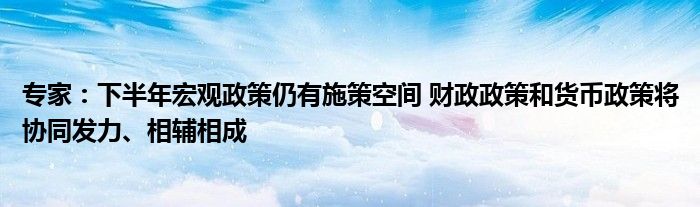 专家:下半年宏观政策仍有施策空间 财政政策和货币政策将协同发力、相辅相成