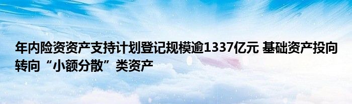 年内险资资产支持计划登记规模逾1337亿元 基础资产投向转向“小额分散”类资产