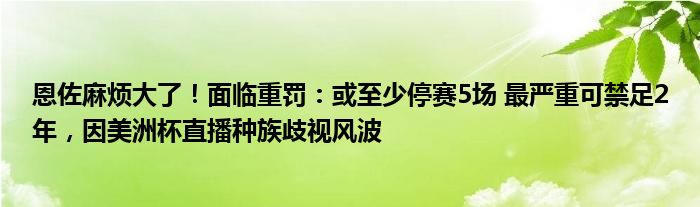 恩佐麻烦大了!面临重罚:或至少停赛5场 最严重可禁足2年,因美洲杯直播种族歧视风波