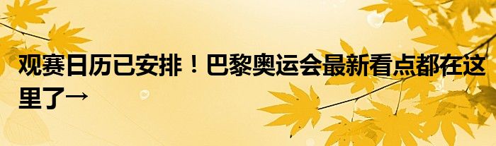 观赛日历已安排!巴黎奥运会最新看点都在这里了→