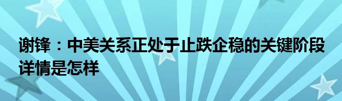 谢锋:中美关系正处于止跌企稳的关键阶段 详情是怎样