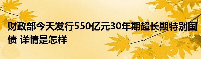 财政部今天发行550亿元30年期超长期特别国债 详情是怎样