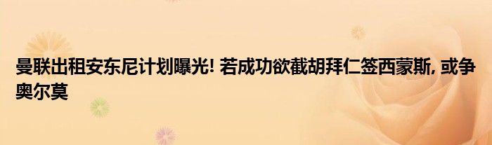 曼联出租安东尼计划曝光! 若成功欲截胡拜仁签西蒙斯, 或争奥尔莫