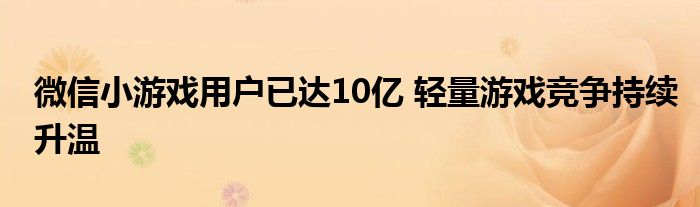 微信小游戏用户已达10亿 轻量游戏竞争持续升温