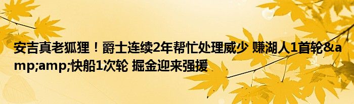 安吉真老狐狸!爵士连续2年帮忙处理威少 赚湖人1首轮&快船1次轮 掘金迎来强援