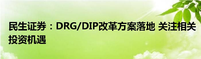 民生证券:DRG/DIP改革方案落地 关注相关投资机遇