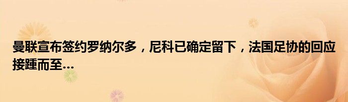 曼联宣布签约罗纳尔多,尼科已确定留下,法国足协的回应接踵而至…