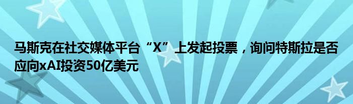 马斯克在社交媒体平台“X”上发起投票,询问特斯拉是否应向xAI投资50亿美元