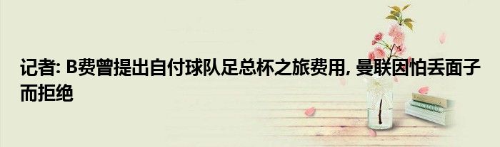 记者: B费曾提出自付球队足总杯之旅费用, 曼联因怕丢面子而拒绝
