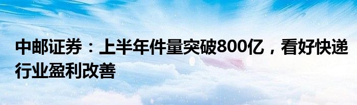 中邮证券:上半年件量突破800亿,看好快递行业盈利改善