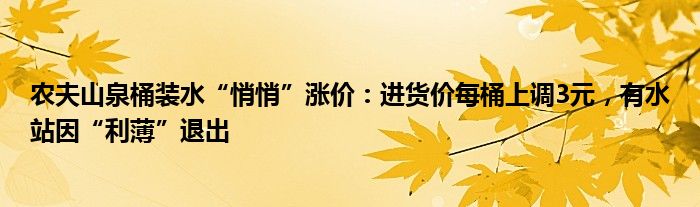 农夫山泉桶装水“悄悄”涨价:进货价每桶上调3元,有水站因“利薄”退出